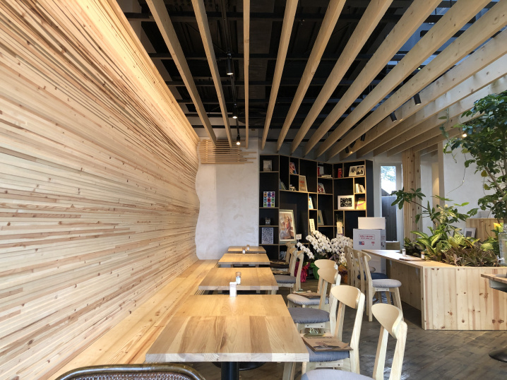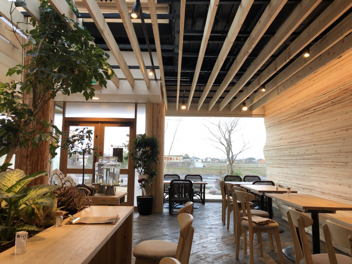 道路沿いは前面ガラス張りで、開放的な店内です。
